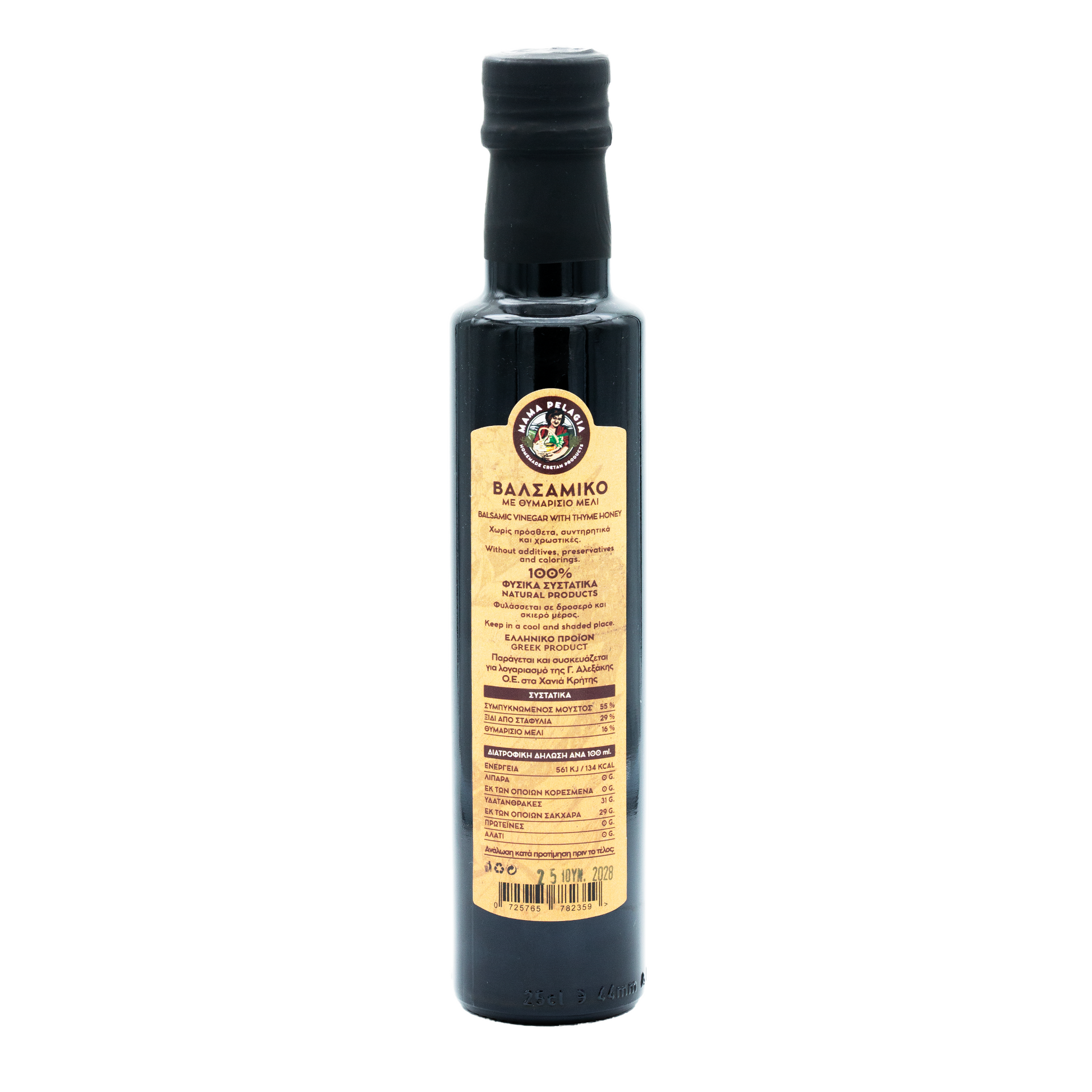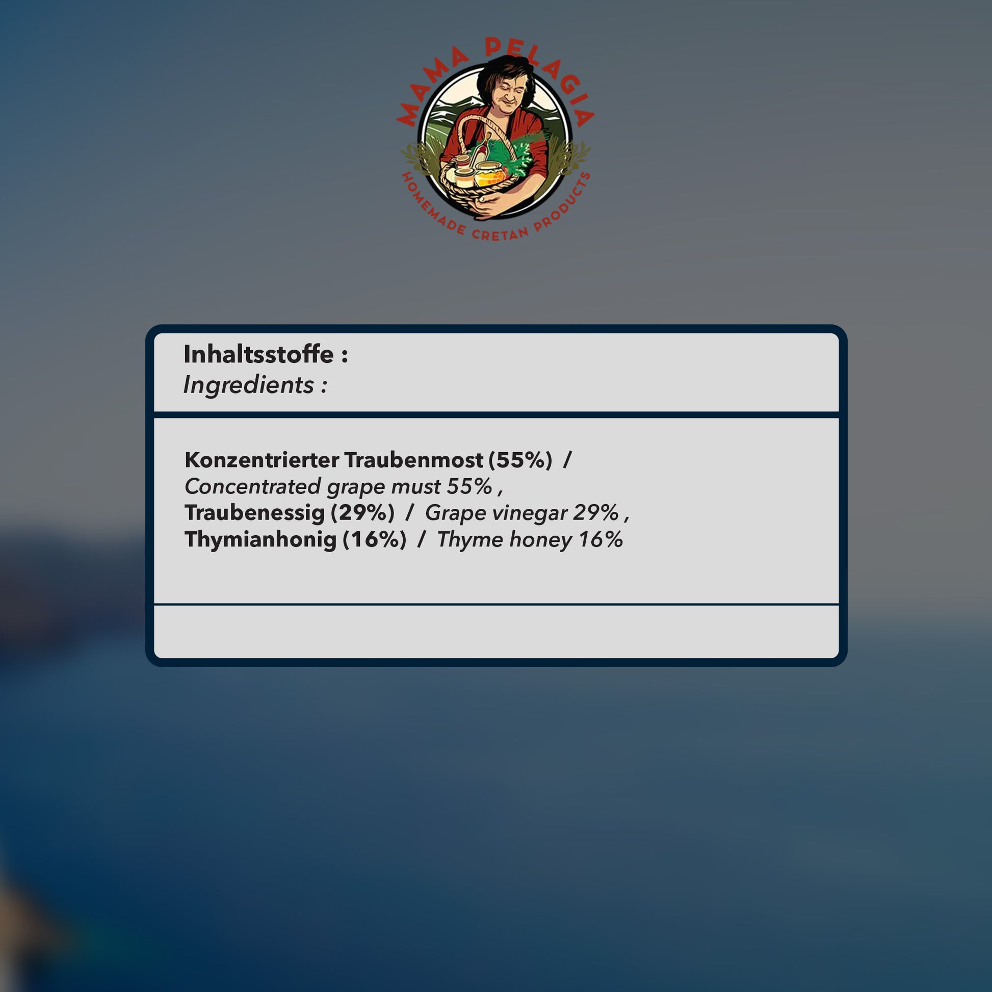 Genießen Sie den exquisiten Geschmack von Mama Pelagia's Balsamico mit Thymianhonig, einer köstlichen Mischung aus würzigem Balsamico-Essig und süßem Thymianhonig. Mit Sorgfalt und Fachwissen hergestellt, verleiht dieser Balsamico-Essig Ihren Gerichten ein einzigartiges und harmonisches Geschmacksprofil.