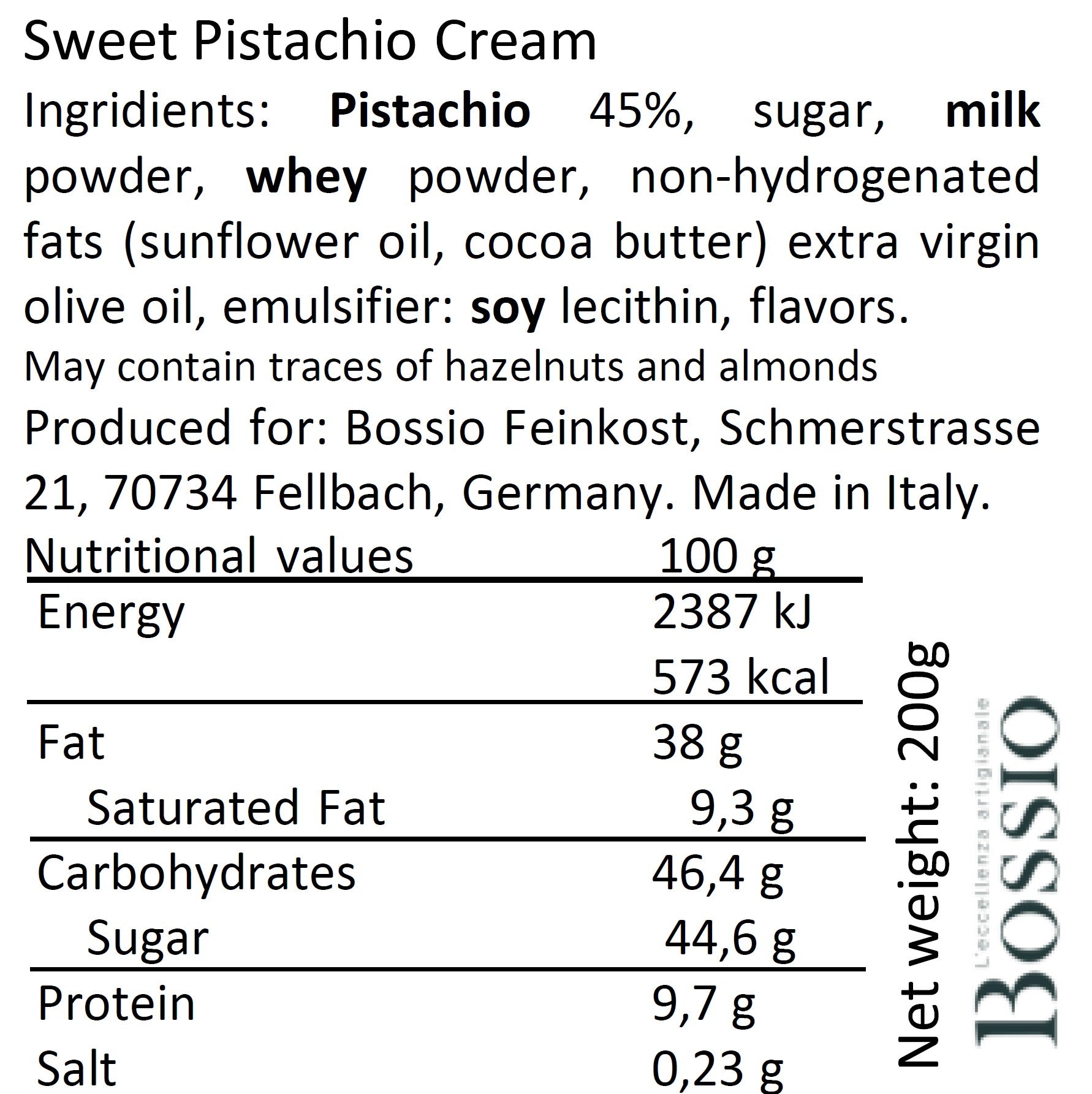 Bossio Feinkost Pistaziencreme 200g