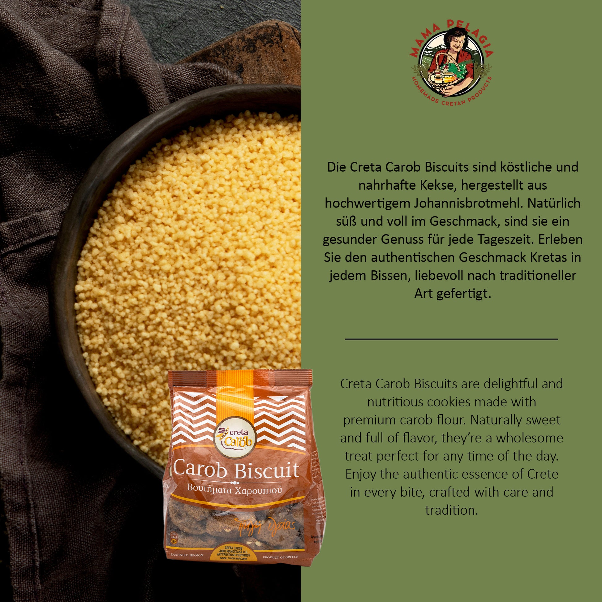 Gönnen Sie sich die ausgewählten Johannisbrotkekse von Mama Pelagia, eine moderne griechische Delikatesse, die perfekt dafür geeignet ist, Kindern auf Kreta beizubringen, wie man sich gesund ernährt. Diese Kekse mit dem reichen Geschmack von Johannisbrot sind ein köstlicher und nahrhafter Genuss.