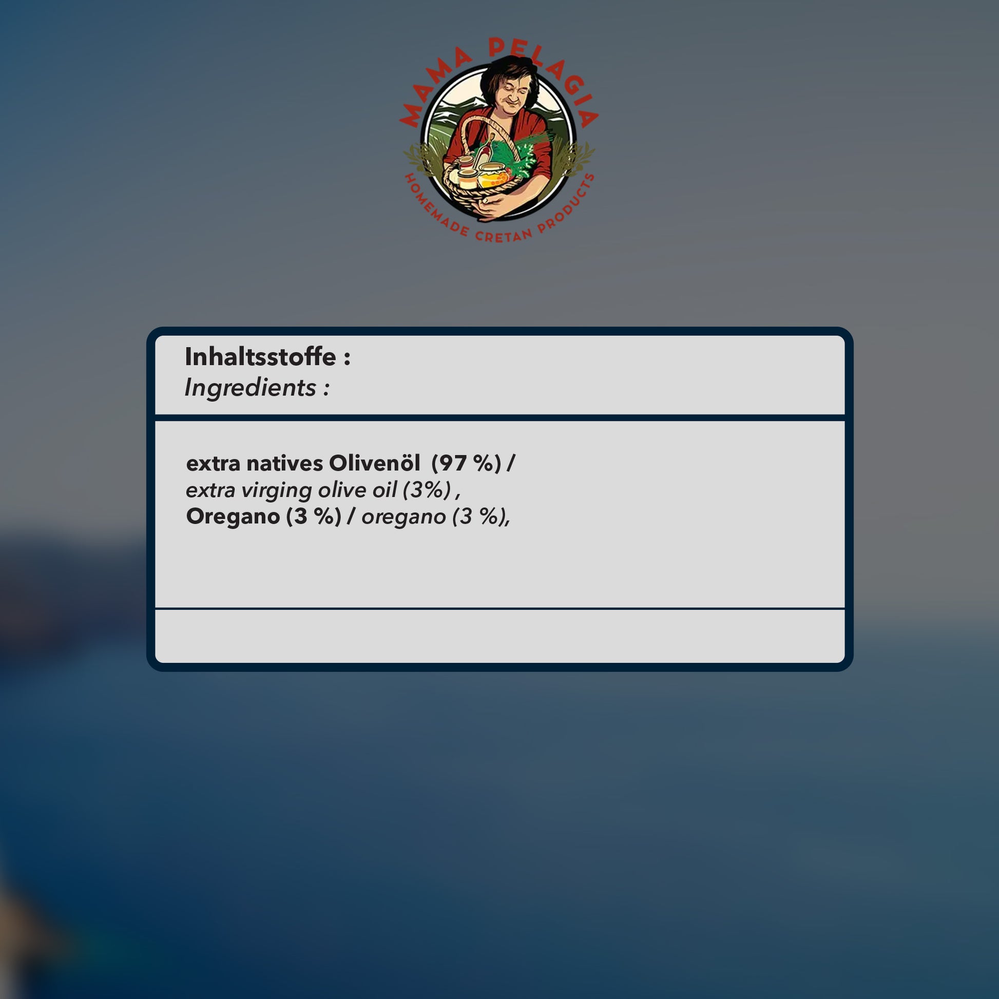 Oregano-Geschmack Olivenöl Würze durch die Kombination Oregano-Aroma natürlich infundiert und natives Olivenöl extra.